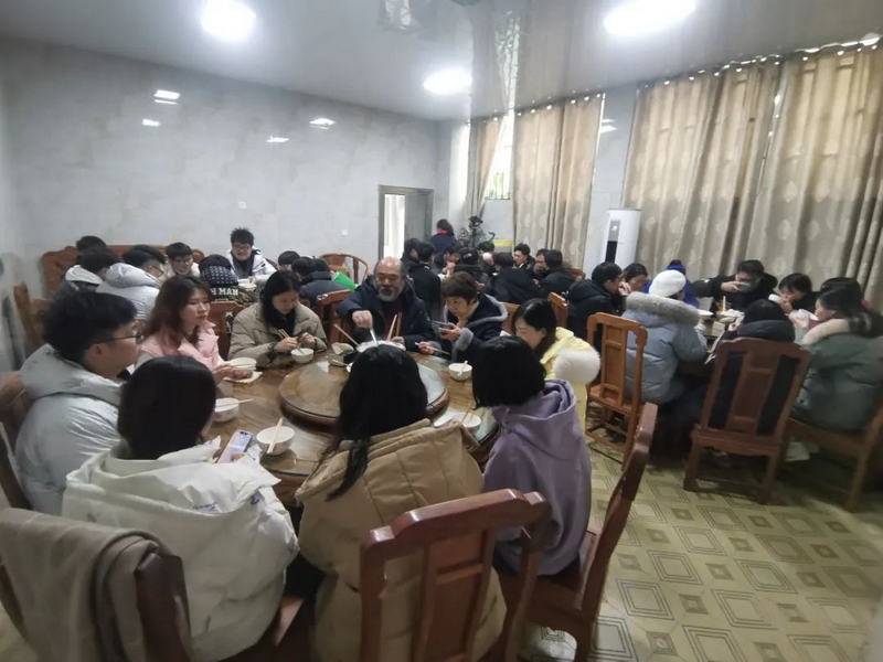 午餐时间,老师们正在食堂客餐厅品尝清甜的太平白菜、香辣的红薯粉皮、烟熏的土猪腊肉等耒阳土菜,校长室阳秘书已经安排好长沙教师的宿舍住所,提前打开空调将宿舍烘烤暖和,被褥毛巾等生活用品也已装备整齐,焕然一新迎接老师们入住。午休过后,风尘仆仆抵达耒阳的老师们已经准备就绪,下午三点来到学校会议室碰头开会,研讨工作。
