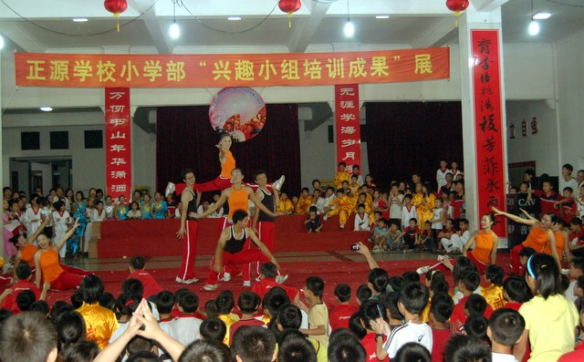 6月25日晚,正源学校小学部“兴趣小组培训成果”展文艺汇演晚会在学校前广场隆重举行。同学们表演的节目有英语合唱、歌舞、韵律操、跆拳道、英语歌舞剧、武术表演、相声、古筝、朗诵等。