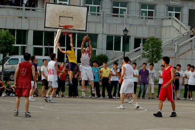 7月1日下午,夏圹镇组队前来我校与校篮球队进行了一场篮球友谊赛。围在四周的师生观众不时为双方的精彩球艺鼓掌。