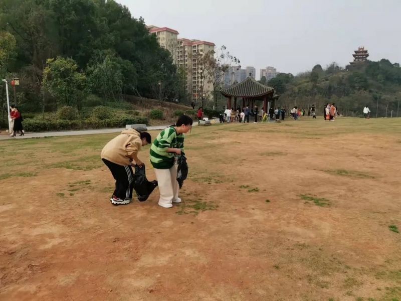 阳春三月天气新。又到春暖花开时节,一年一度的学习雷锋纪念日也如期而至。为进一步弘扬新时代雷锋精神,践行社会主义核心价值观,落实罗校长在开学典礼上“向雷锋同志学习”的倡议,3月4日下午,在学部主任曾良古,德育主任李禄顺的号召下,初三年级423班、426班带上卫生打扫工具,前往马阜岭公园进行垃圾清扫活动。