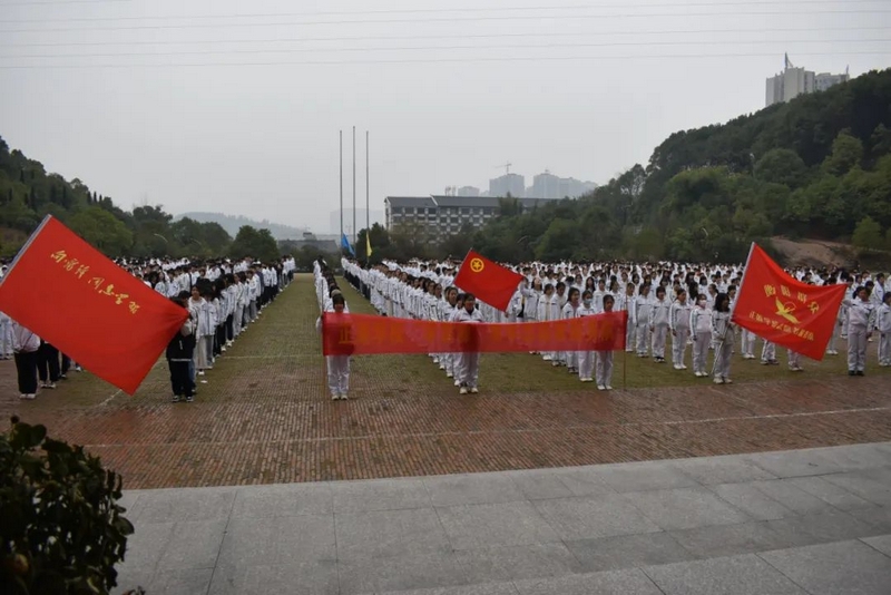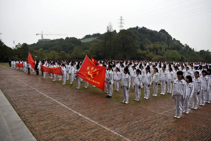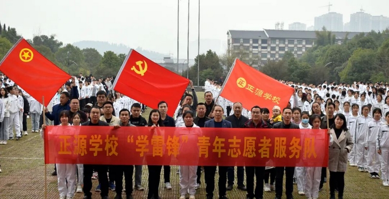 3月5日清晨,小学部、初中部、高中部各年级青年志愿者服务队齐集正源广场,红旗招展,青春飞扬。