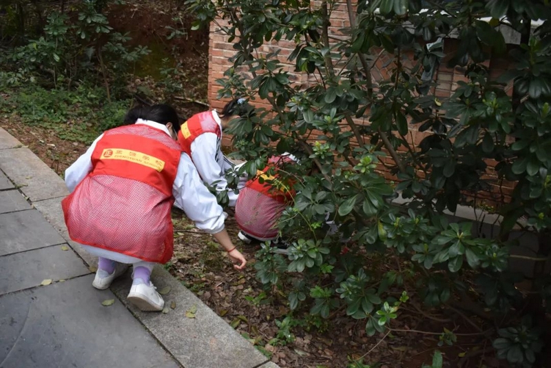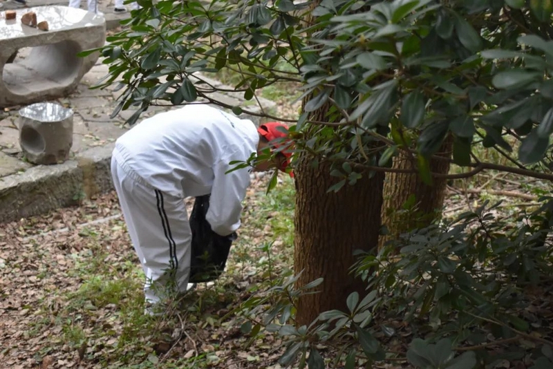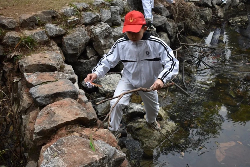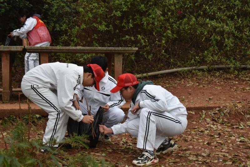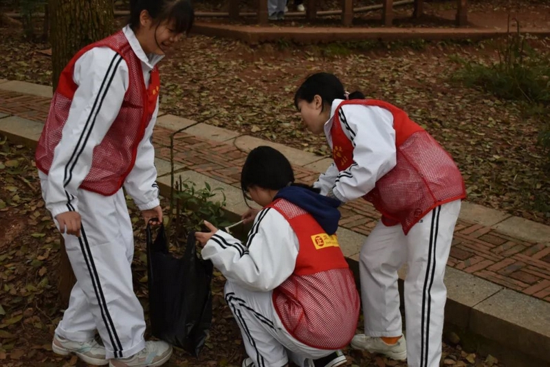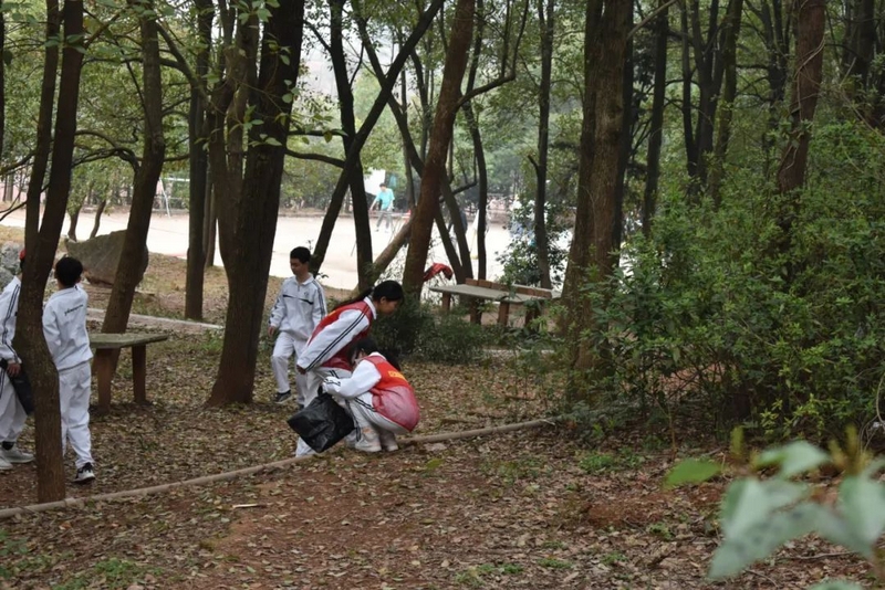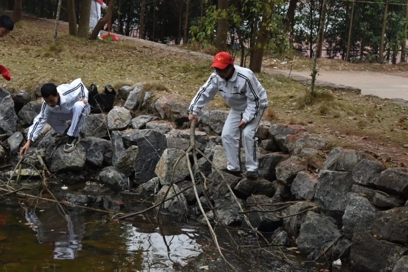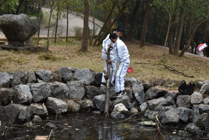 启动仪式过后,准高一年级志愿者服务队携带劳动工具奔赴东苑,仔细清理水池、山坡、石阶各处卫生。